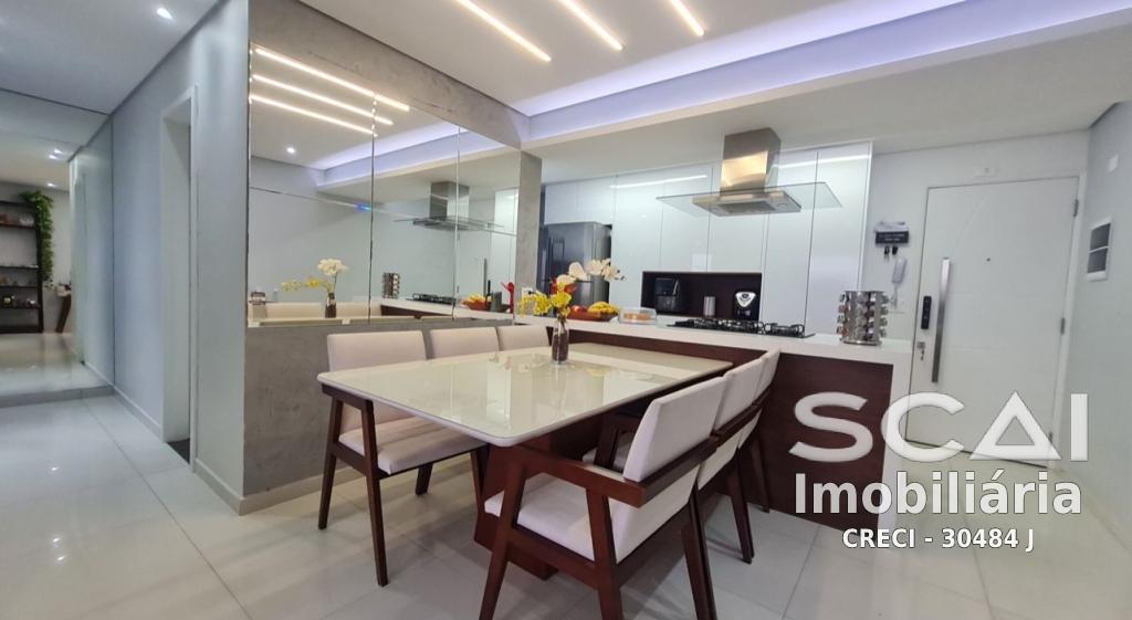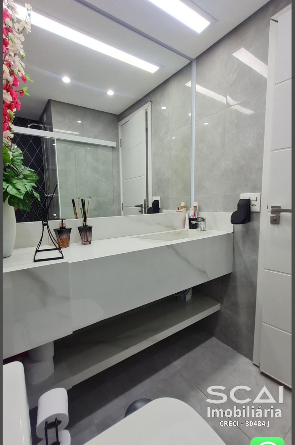 O apartamento contém: 02 dormitórios (sendo 01 suíte), 02 sala, 01 cozinha, 02 banheiros e área de serviço.