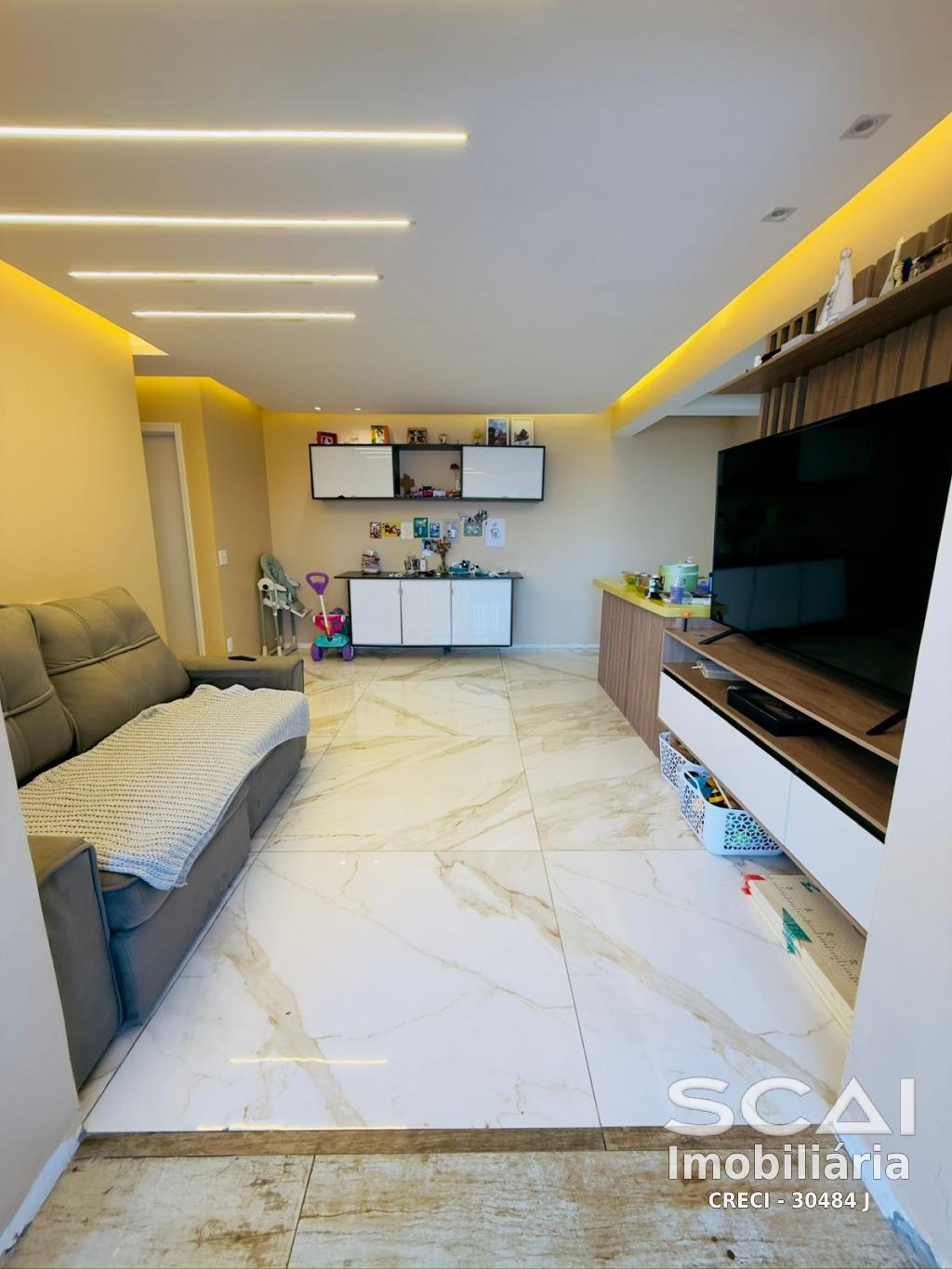 O imóvel contém: 02 dormitórios (sendo 02 suíte), 01 sala, 01 cozinha, 02 banheiros, área de serviço e 02 vaga de garagem